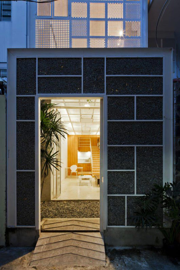 Thiet ke nha ong 3x10m này nằm ở một khu dân cư nhỏ trong thành phố. Thách thức lớn nhất của kiến trúc sư là vẫn phải cung cấp đầy đủ các không gian sống, đảm bảo sự riêng tư nhưng vẫn tiện ích một cách tối ưu nhất. Với diện tích đất nền chỉ 3x10m, ngôi nhà mang tất cả những điều kiện bất lợi của một căn nhà ống giữa thành phố đông dân.