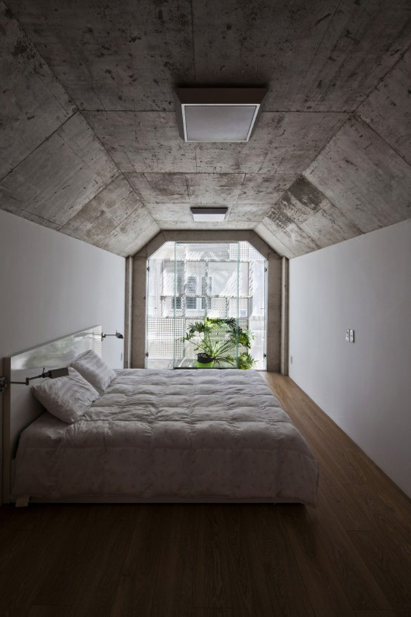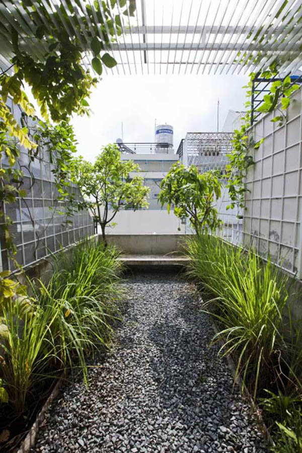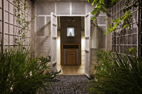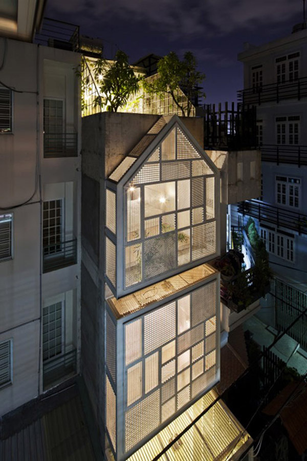 Giải pháp đưa ra là xây ngôi nhà thành hai lớp - vừa bảo vệ sự kín đáo của người ở bên trong mà vẫn thông thoáng ra bên ngoài. Cấu trúc xếp lớp còn mang đến tính thẩm mỹ lạ mắt cho căn nhà khác biệt hẳn với những căn hộ xung quanh.