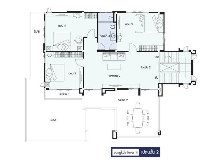Tầng 2 với 3 phòng ngủ một phòng khách chung đặc biệt có một không gian ăn tiệc lớn, với không cảnh đẹp tầm nhìn rộng ra trước biệt thự