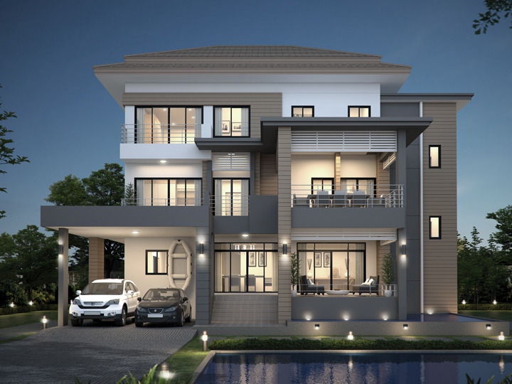 Biệt thự với tông màu nâu nhạt, một màu bền màu với thời gian cho biệt thự nhà bạn một sự vững chãi và ít bị phai mòn theo thời gian. thiết kế biệt thự 3 tầng với mái kiểu thái đặc trưng, biệt thự với bể bởi lớn và hiện đại trước nhà, ngôi biệt thự cũng rất lung linh về đêm nhờ hệ thống đèn được lắp đặt nhiều nơi quanh biệt thự
