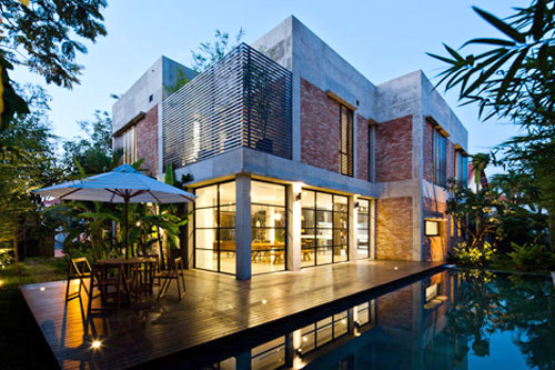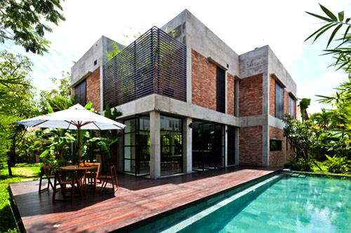 Thiet ke biet thu này được cải tạo lại từ một căn biệt thự cũ ở Thảo Điền – vùng ngoại ô phía đông thành phố Hồ Chí Minh. Nơi đây có không khí mát mẻ với những rặng cây lớn cùng hơi mát từ con sông Sài Gòn uốn lượn bao quanh.  Ban đầu, căn biệt thự vốn được thiết kế theo phong cách Art Deco – một trường phái nghệ thuật và trang trí mang tính triết trung được bắt đầu tại Paris vào thập niên 1920 với những hình khối cubic và hình zíc – zắc mạnh mẽ. Chủ sở hữu hiện nay muốn lột bỏ và thay thế bằng một ngôi nhà với thiết kế mở hiện đại hơn.