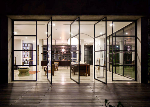 Với những ô cửa sổ kính lớn, những trục xoay hướng ra bể bơi xanh ngắt phía bên ngoài