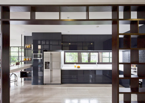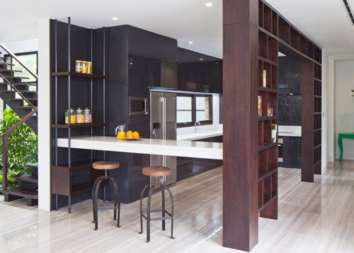 Trong nhà có những bức vách hở tạo độ thoáng giữa các không gian mà vẫn đảm bảo sự riêng tư cho các phòng